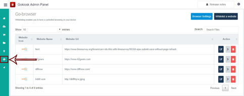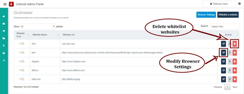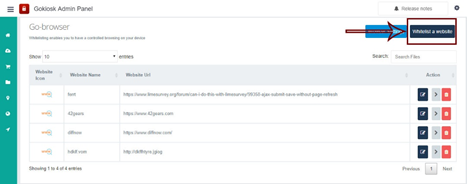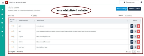 8). Admin can modify settings of white-listed websites, clicking on edit and delete.
