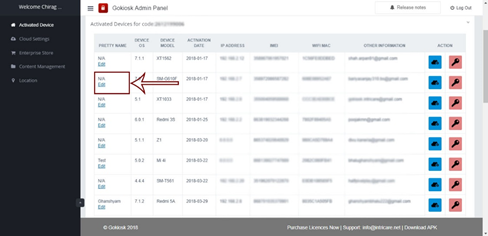 3). Admin can give any user-friendly name to android devices for ease of management by clicking on the Edit.